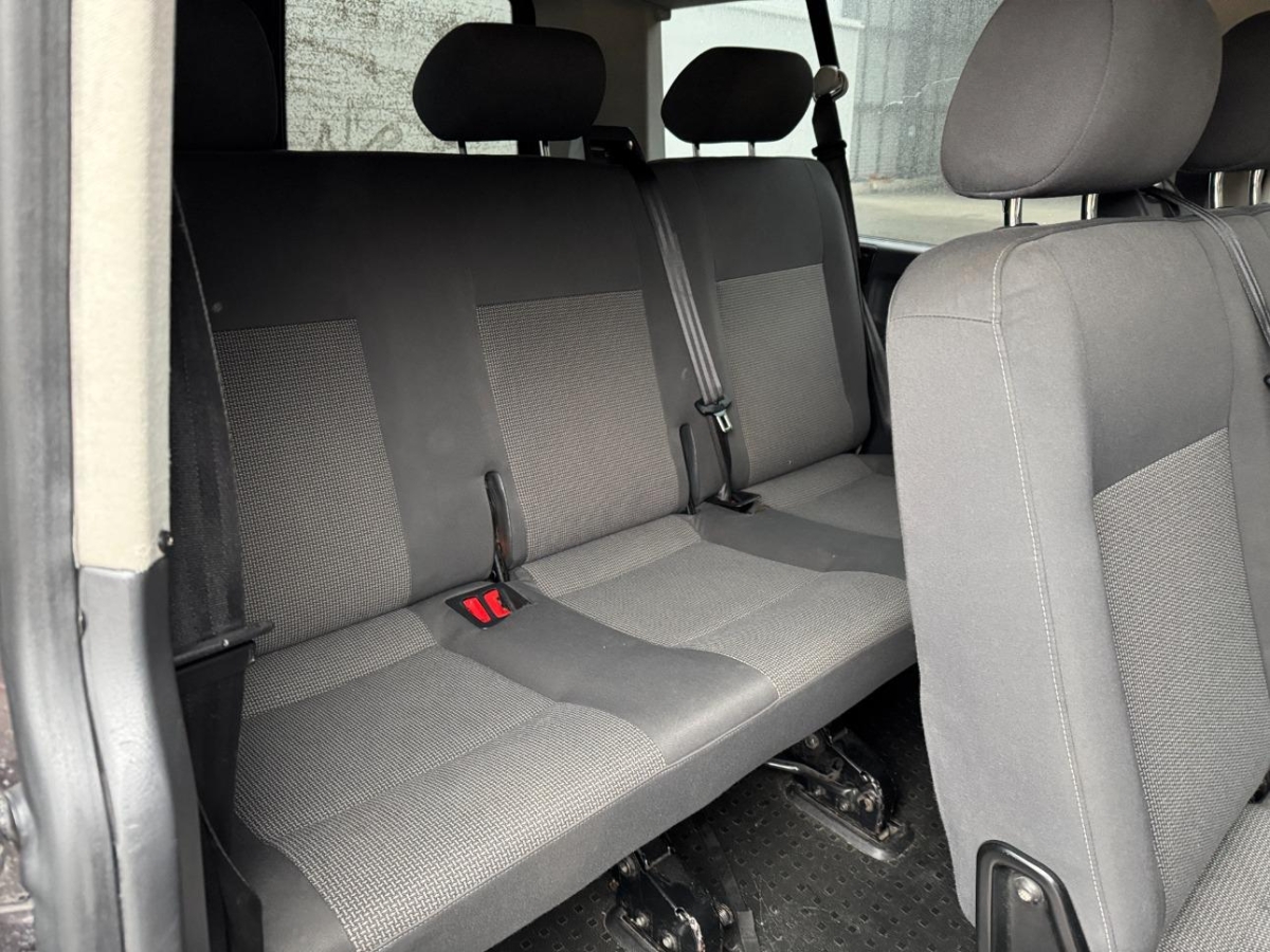 Pollenfilter (Staubfilter), Beide Make up-Spiegel beleuchtet, Scheibenwischer vorne mit Intervall, Zentralverriegelung mit Fernbedienung, Ablagefach im Dachbereich, Licht: Nebelschlussleuchte, Kombiinstrument und Multifunktions- anzeige (MFA) mit monochrom TFT-Display, Teppichfussmatten vorne und hinten, Partikelfilter und Oxydationskatalysator, Trittstufe integriert, Licht: Drittes Bremslicht, Innenspiegel abblendbar, Antiblockiersystem (ABS), Elektrische Fensterheber vorne, Uni-Lackierung, Lenkrad verstellbar, Sonnenschutzrollos für Seitenfenster im Fahrgastraum, Klimaanlage halbautomatisch mit Aus- strömer vorn, Elektronische Differentialsperre (EDS), Antriebsschlupfregelung (ASR), Kreuzstützen für Vordersitze verstellbar, Allradantrieb permanent, Leseleuchten hinten, Aussenspiegel rechts und links beheizbar und elektrisch verstellbar, Tagfahrlicht, Befestigungsösen im Laderaum, Vordersitze höhenverstellbar, Stahlräder 16J, 6-Gang-Getriebe, Schiebefenster hinten, Radiovorbereitung, Antenne und Entstörung, Heizungsausströmer im Lade-/Fahrgastraum, 2 Einzelsitze vorne, Berganfahrassistent, Airbag Fahrer und Beifahrer, Wegfahrsperre elektronisch, Elektronisches Stabilitäts-Programm (ESP), Reifenreparatur-Set mit Kompressor, Servolenkung, Drehzahlmesser, Radio/CD RCD 310 mit Aux-In, Türen: Schiebetüre rechts, ISOFIX Kindersitzvorrichtung, Armlehne für Fahrer- und Beifahrersitz, Heckscheiben-Wisch-/Waschanlage, Bestuhlung Fahrgastraum 3er-Sitzbank 2. Sitzreihe, Stossstangen, Aussenspiegel und Türgriff in Wagenfarbe, Bestuhlung Fahrgastraum 2er-Sitzbank 1. Sitzreihe, Digital Uhr, Heckklappenentriegelung von innen, elektrisch, Leseleuchten vorne, Leuchtweitenregulierung von innen, Stoff-Ausstattung, Steckdose 12V, Trittstufenbeleuchtung vorn und hinten, Wärmeschutzverglasung