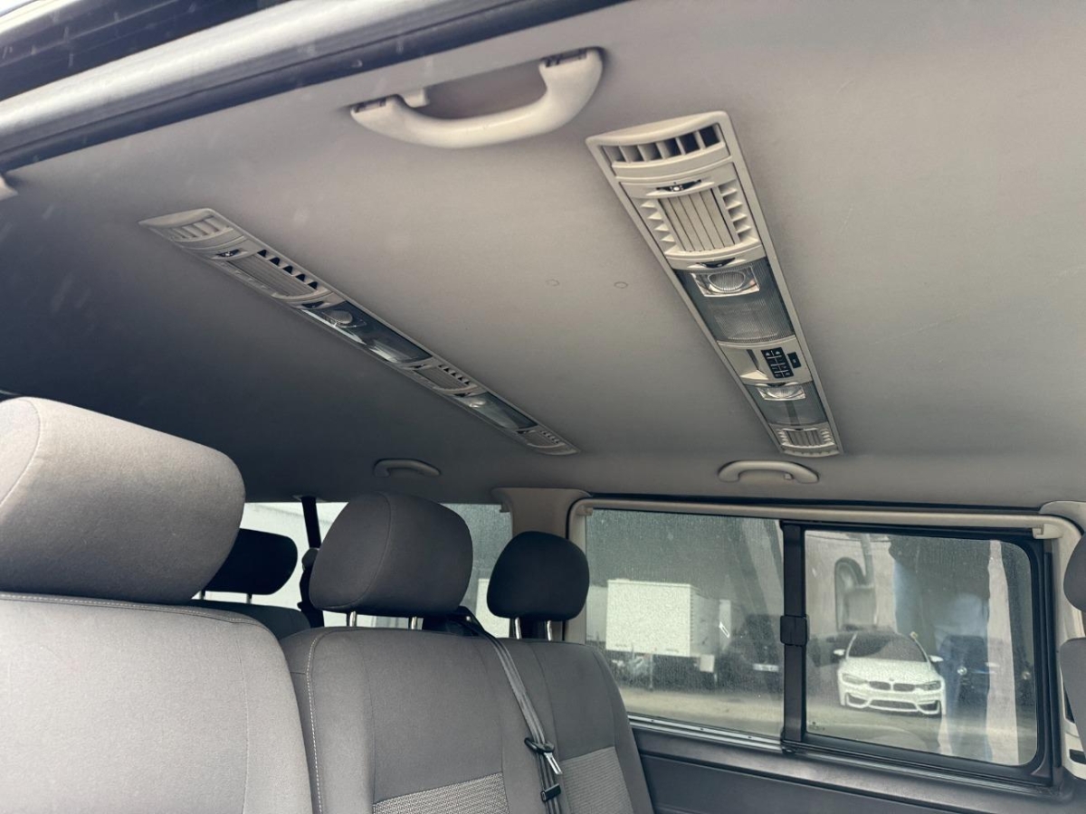 Licht & Sicht Paket (Innenspiegel automatisch abblendbar, Regensensor für Scheibenwischer vorne, Tagesfahrlichtschaltung mit Assistenz- fahrlicht und Coming-Home-Funktion), Türen: 2. Schiebetüre links, Bestuhlung Fahrgastraum 2er-Sitzbank und Einzelsitz rechts in 1. Sitzreihe, Gummimatten im ganzen Fahrzeug, Lenkrad und Schalthebelgriff in Leder, Klimatisierungsautomatik Climatronic, Scheibenwaschdüsen beheizt, Flügeltüren hinten mit Fenster beheizbar, Tempomat, Licht: Nebelscheinwerfer mit Abbiegelicht, Anhängervorrichtung mit abnehmbarem Kugelkopf, Beifahrer Doppelsitzbank, Fahrersitz heizbar