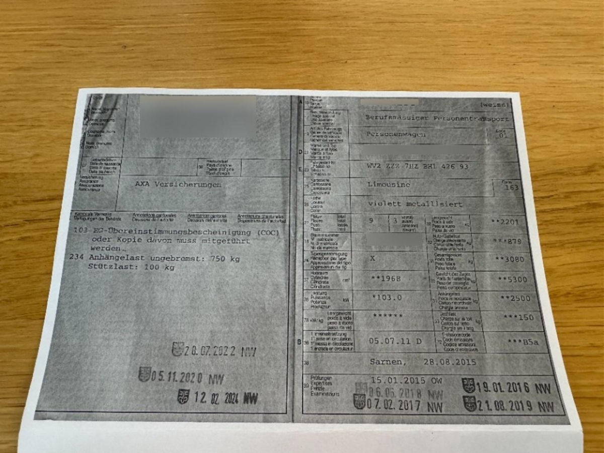 | Fahrzeugausweis | Vorhanden |
