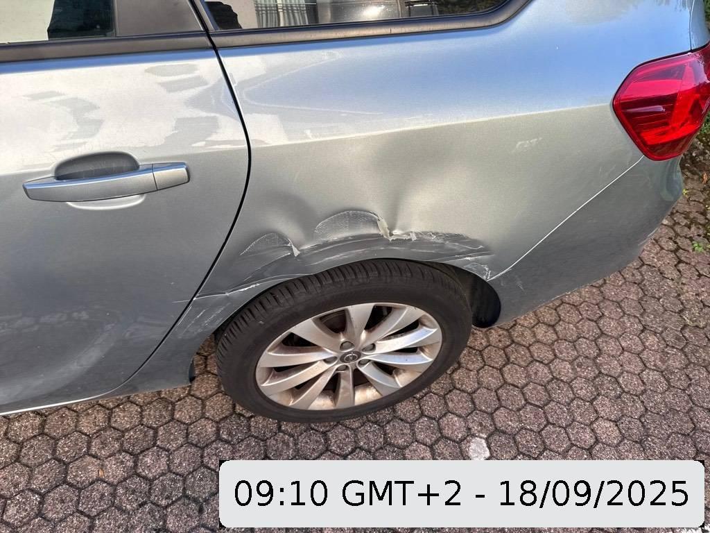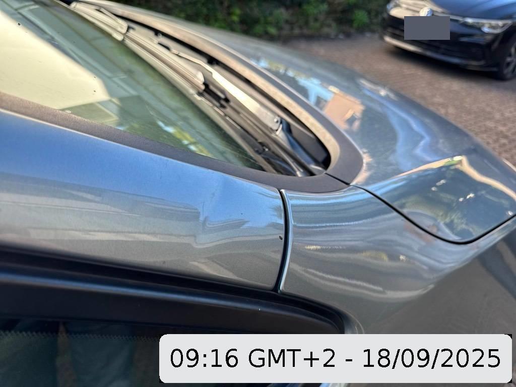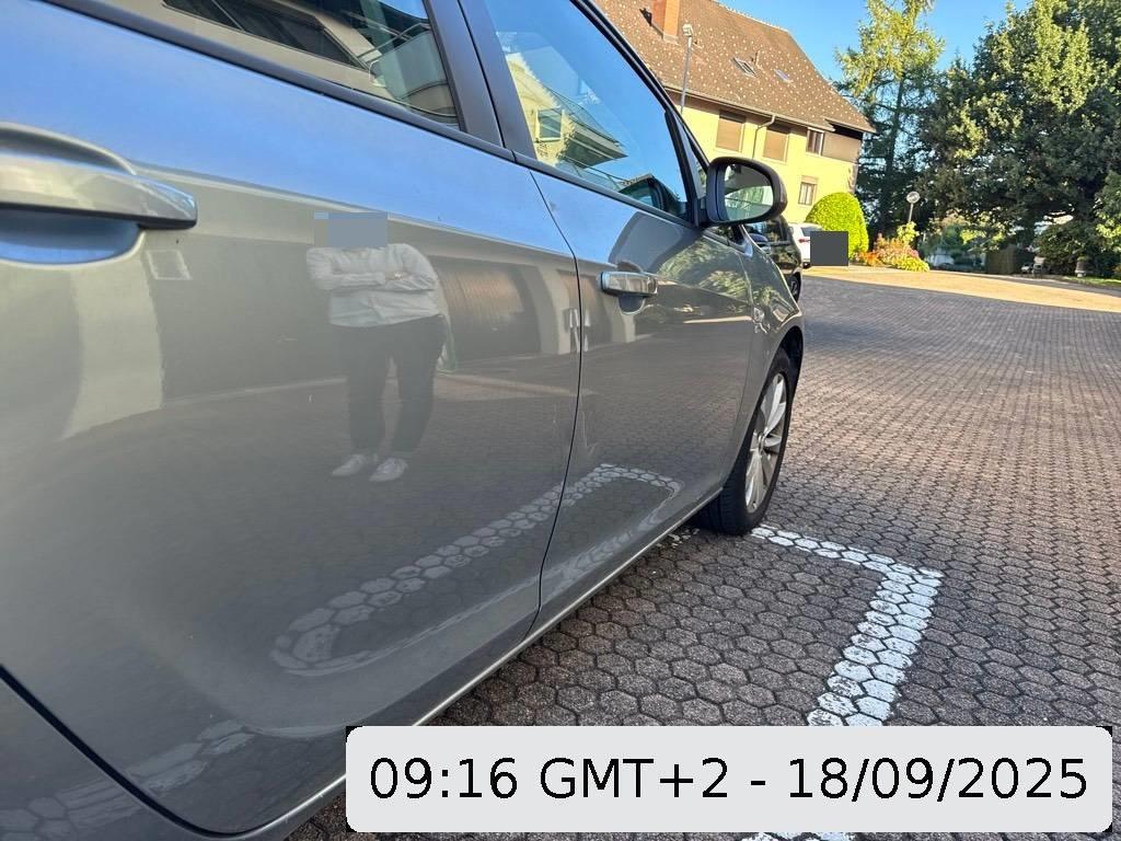 Schadenhergang: Wind, Sturm. Mülldeckel ist auf die Haube gefallen, und hat das Fahrzeug von der Seite beschädigt