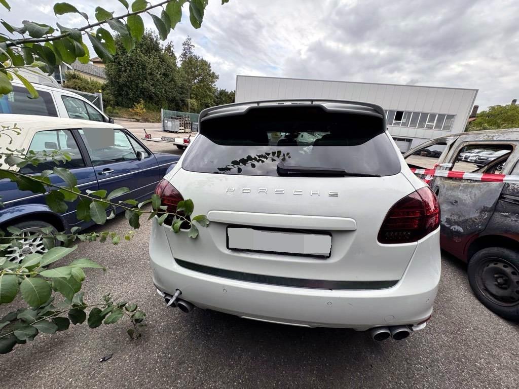 Sitze: Sitzheizung vorne und hinten, Licht: LED Heckleuchten, Multifunktionsanzeige, ISOFIX Kindersitzvorrichtung, 3-Punkt-Sicherheitsgurte auf allen Plätzen, Licht: Fahrlichtassistent (automatisches Fahrlicht), Steckdose 12V, Sitze: Komfortsitze vorne elektr. verstellbar, Mittelkonsole mit Ablagefach, Vorbereitung für Anhängevorrichtung, Airbag: Airbag Fahrer und Beifahrer, Digital Uhr, Fahrstabilisierungssystem Porsche - Stability-Management (PSM), Drehzahlmesser, Antiblockiersystem (ABS), Park Distance Control vorne und hinten, Bremsbelag-Verschleissanzeige, Getönte Scheiben, Adaptives Bremslicht, Tageskilometerzähler, Innenspiegel und Aussenspiegel links automatisch abblendend, Katalysator geregelt, Aktivkohlefilter, Assist: Tempomat, Antriebsschlupfregelung (ASR), Auspuffanlage mit 2 Endrohren (links und rechts), Türgriffe aussen in Wagenfarbe, Kofferraum-Entriegelung von innen, Aussenspiegel rechts und links beheizt, elektrisch verstell- / und einklappbar, Fussraumbeleuchtung vorne und hinten, Kraftstofftank 100 Liter, Räder: Reifendruckkontrollsystem ( RDK ), Bremsassistent (BAS), Aussentemperaturanzeige, Heckscheiben-Wisch-/Waschanlage, Porsche Communication Management (PCM) - inklusiv erweitertem Navigationsmodul, Lederausstattung Glattleder einfarbig, Wegfahrsperre elektronisch, Steckdose, Innenlicht-Abschaltverzögerung, Licht: Nebelschlussleuchte, Scheibenwischer vorne mit Intervall, Reduktionsgetriebe, Nichtraucherausführung, Diebstahlwarnanlage mit Innenraumüberwachung, Aluminium-Paket, Ablagefach in Armlehne hinten, Airbag: Airbag Beifahrer deaktivierbar, 3 Kopfstützen hinten, Airbag: Seitenairbag für Fahrer und Beifahrer, Media: Bose Surround Soundsystem, Servolenkung, Assist: Porsche Traction Management (PTM), Zentralverriegelung mit Fernbedienung, Assist: Seitenaufprall-Schutzsystem, Porsche Active Suspension Management (PASM): Luftfederung inkl. Niveau- regulierung, Lenkradheizung, Metallapplikationen, Heckscheibenheizung, Elektronische Parkbremse, Wartungsintervall-Anzeige, 4 Leichtmetallräder Cayenne Turbo Rad 19J, Gurtwarneinrichtung für Fahrer- und Beifahrersitz, Räder: Reifenreparatur-Set mit Kompressor, Klimatisierungsautomatik, 6-Kolben-Aluminium-Monobloc-Festsattelbremsen vorne, Ausstiegsleuchten in den Türen, Lackierung: Metallic-Lackierung, Dachhimmel in Alcantara, Einstiegsschienen vorne, Gurtstraffer vorne und hinten, Zweiklanghorn, Bordcomputer, Getriebe: 8-Stufen-Automat sequentiell, Armauflage Mittelkonsole vorn mit integriertem Ablagefach, Leseleuchten hinten, Vordersitze höhenverstellbar, Adaptive Sportsitze inkl. Komfort- Memory-Paket, Laderaumabdeckung, Airbag: Window-Kopfairbags, Tankdeckel-Entriegelung von innen, Höhenverstellbare Gurten vorne, Leseleuchten vorne, Automatikgurt in Fondmitte, Dachspoiler, Elektrische Fensterheber vorne + hinten, Bi-Xenon-Scheinwerfer inkl. Porsche Dynamic Light System (PDLS), Allradantrieb permanent, Sitze: Rücksitzlehne geteilt abklappbar, Licht: LED Blink- und Positionsleuchten, Oeldruckanzeige