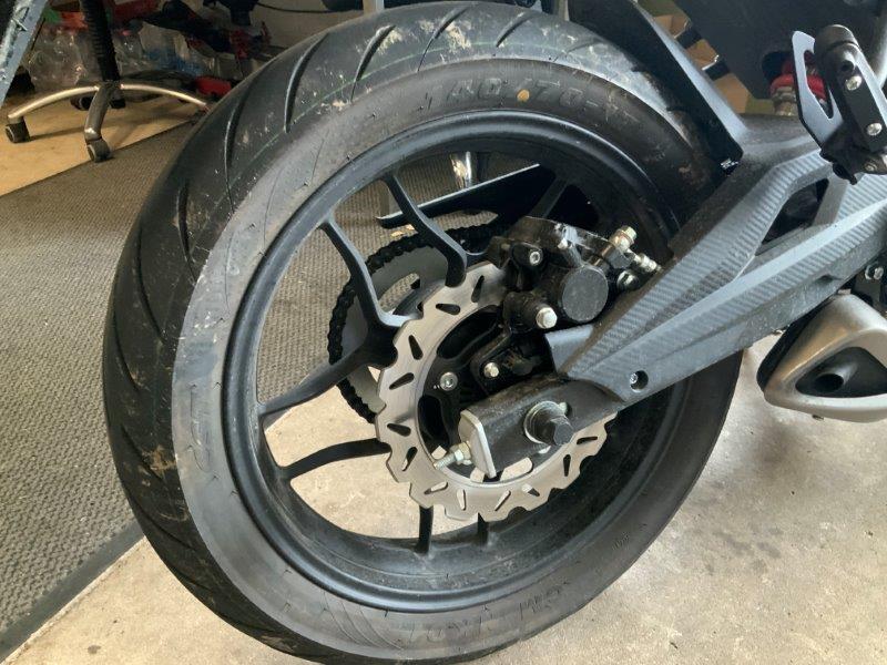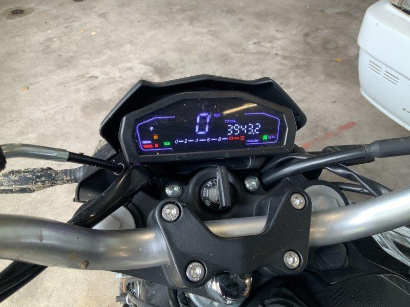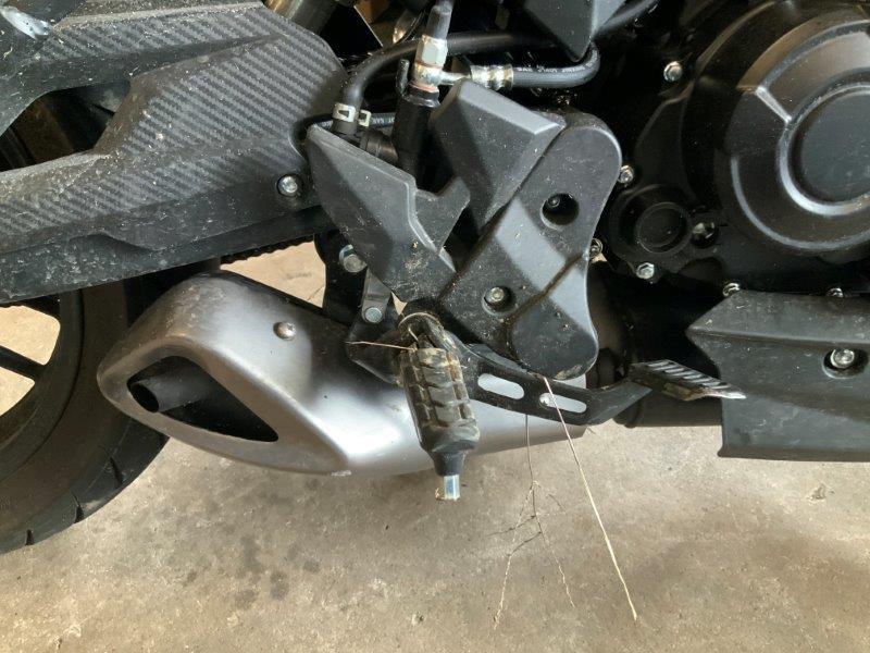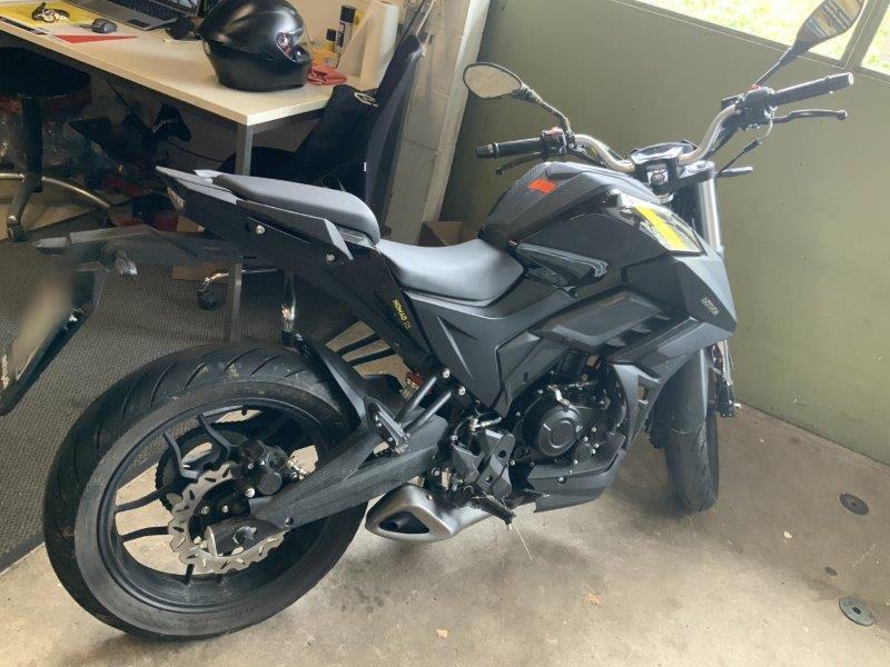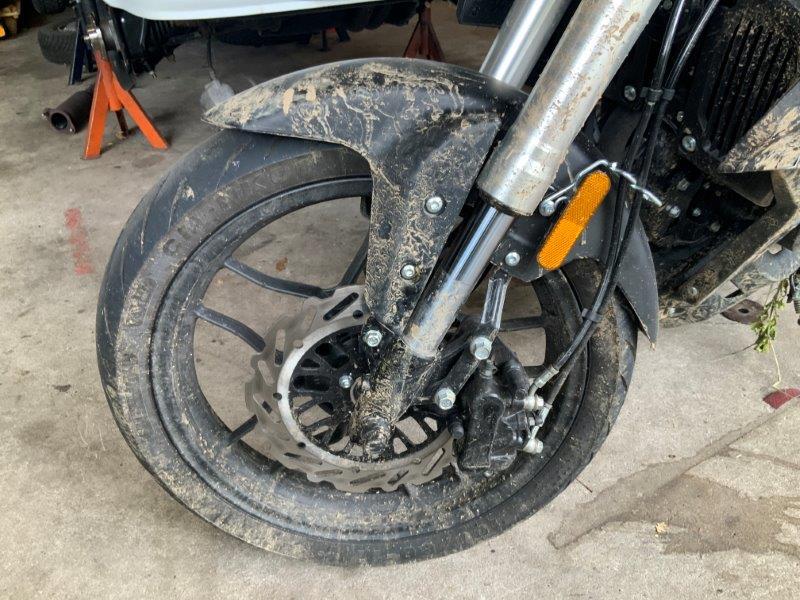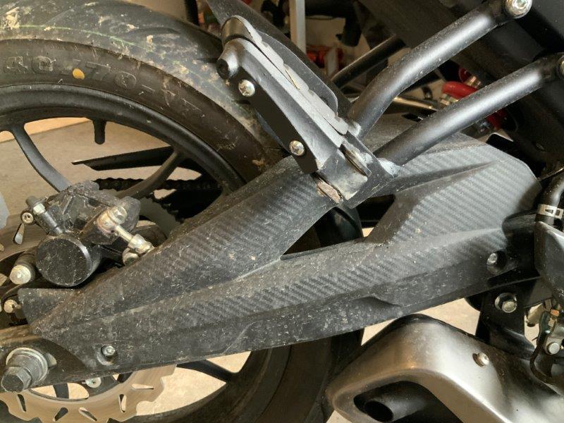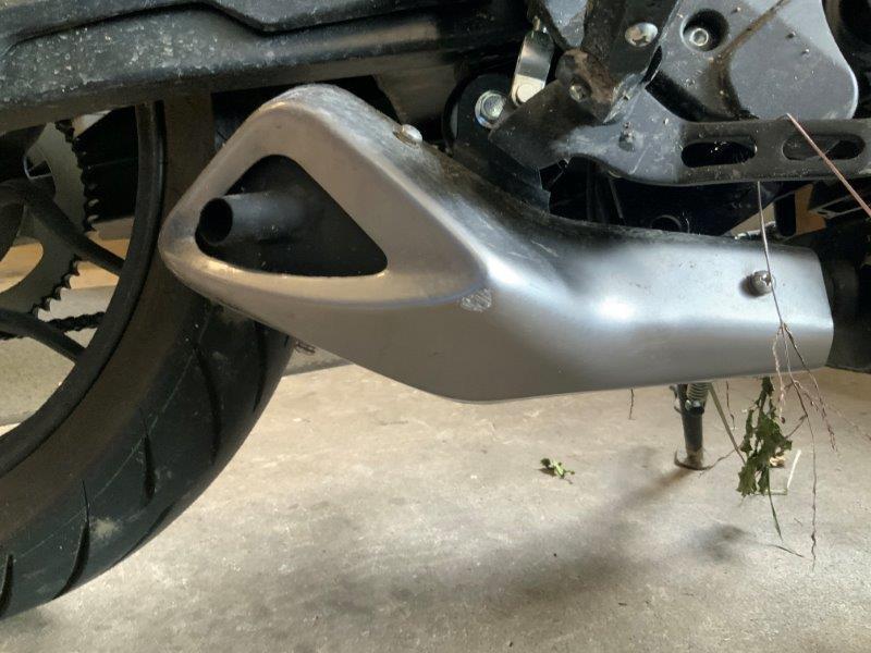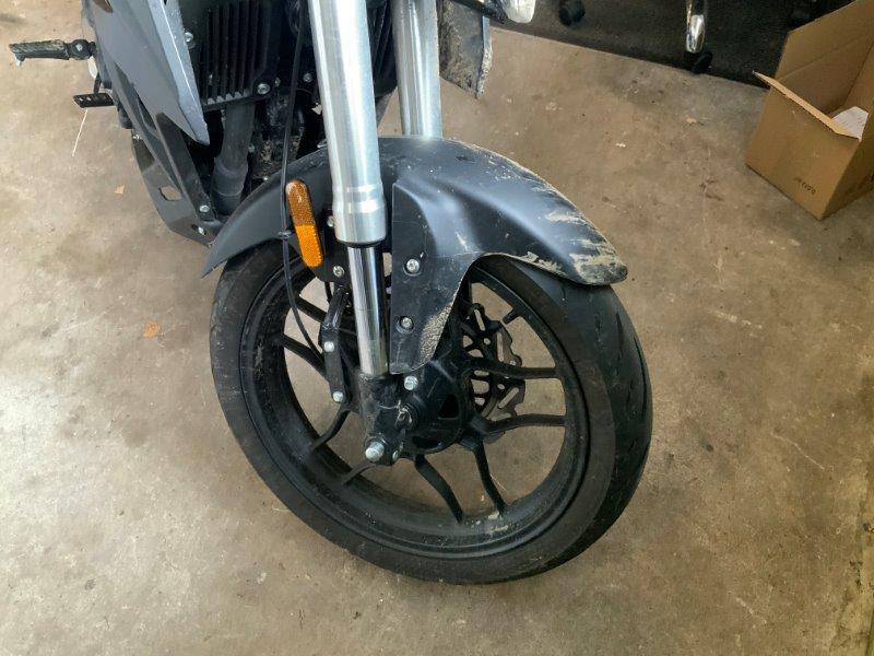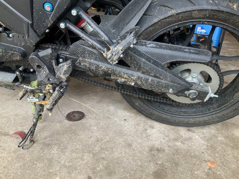 Diverse Verkleidungen und Anbauteile beschädigt. Lenkanschlag am Rahmen verbogen.