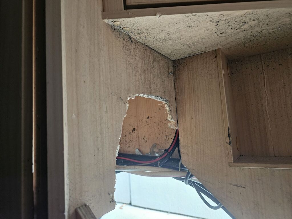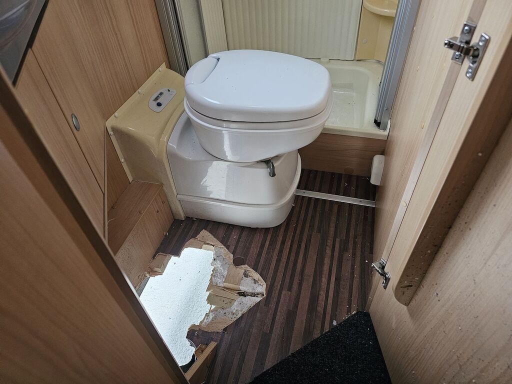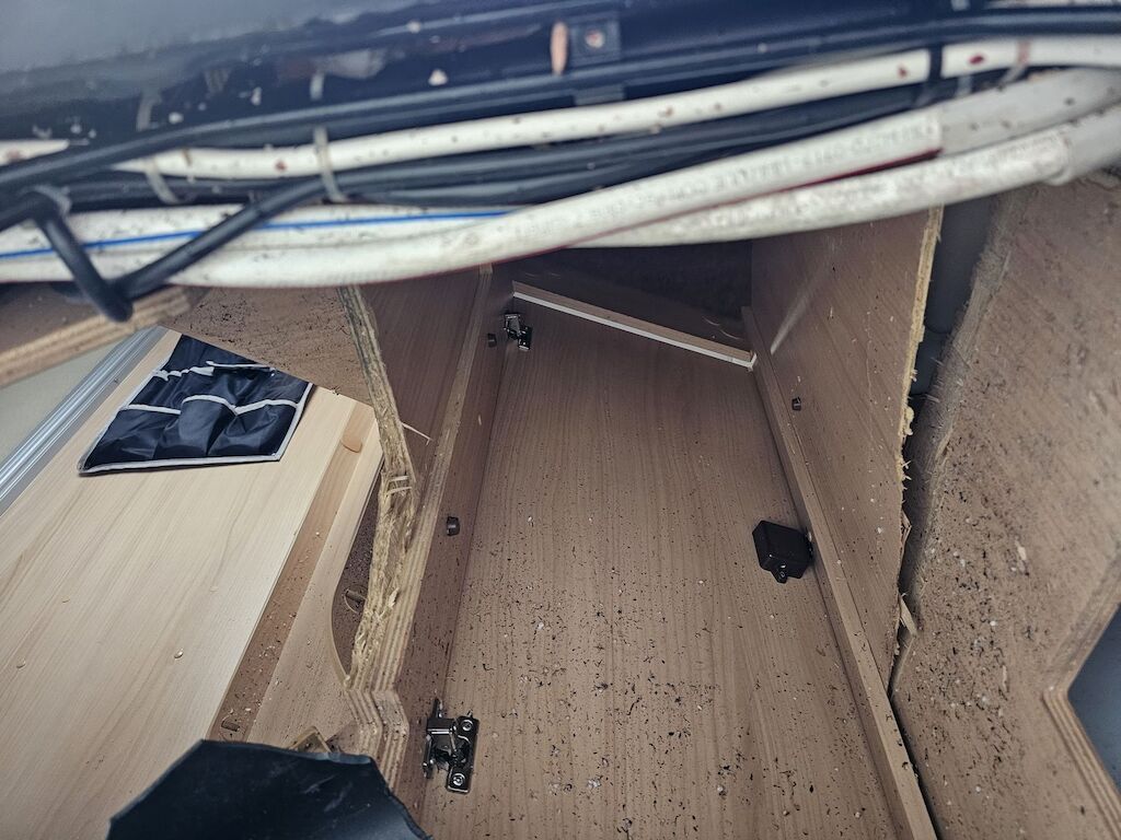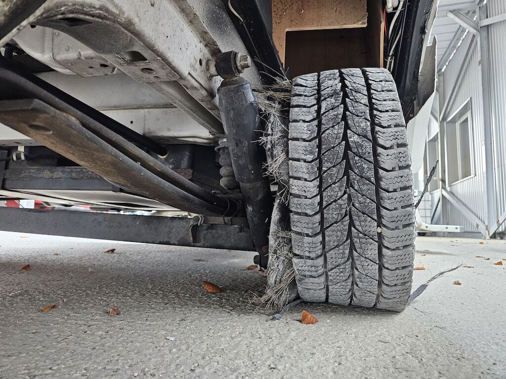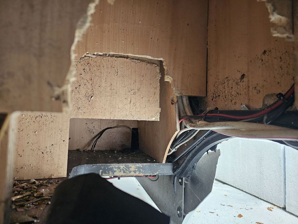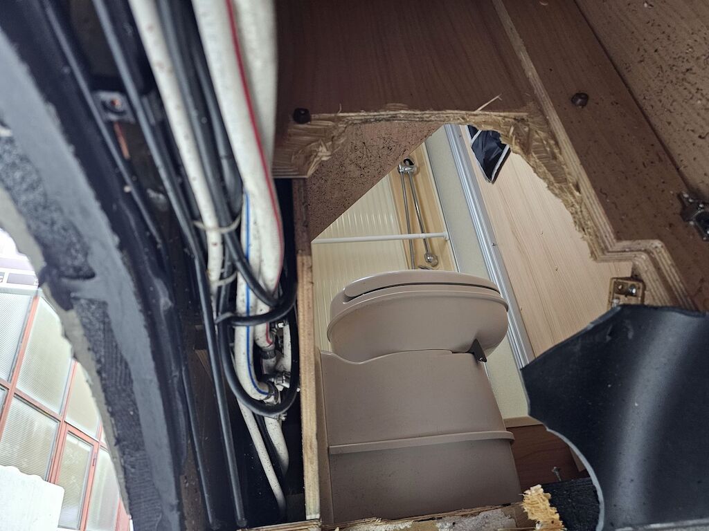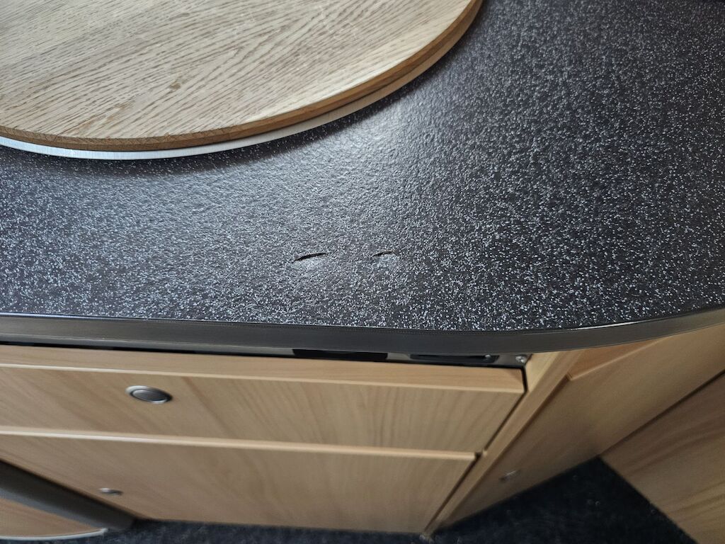 Consécutif à l'éclatement du pneu arrière droit : amortisseur, jupes latérales et moulure du passage de roue, cuvelage d'aile, plancher, meubles.